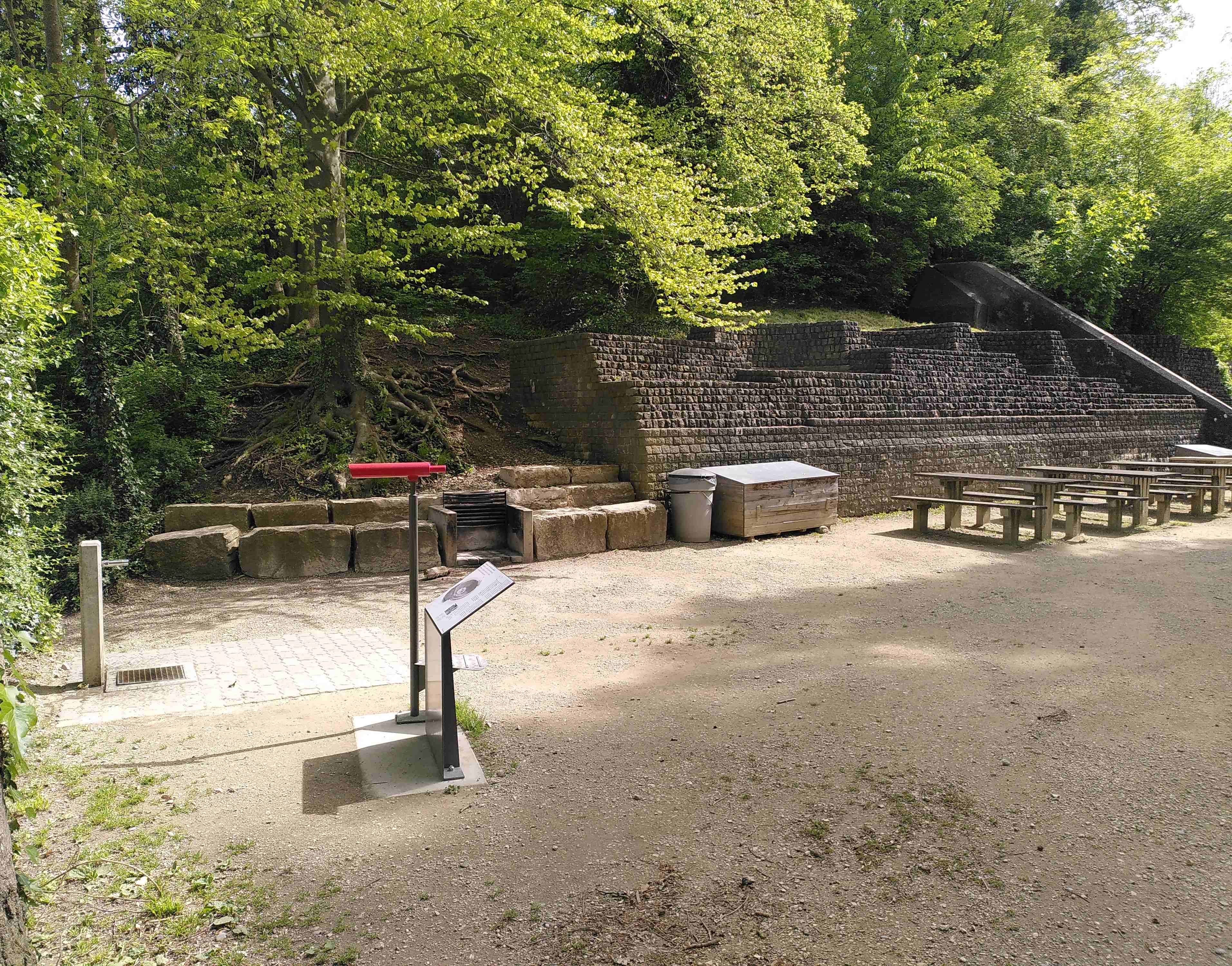 Vom Schönthal der Ergolz entlang, beim Fischerhüttli rechts übers Brückli über die Ergolz. Dann auf der Strasse Richtung Feldhof, danach links auf dem Weglein durch den Wald, unter der Autobahnbrücke durch und danach rechts ins Amphitheater.