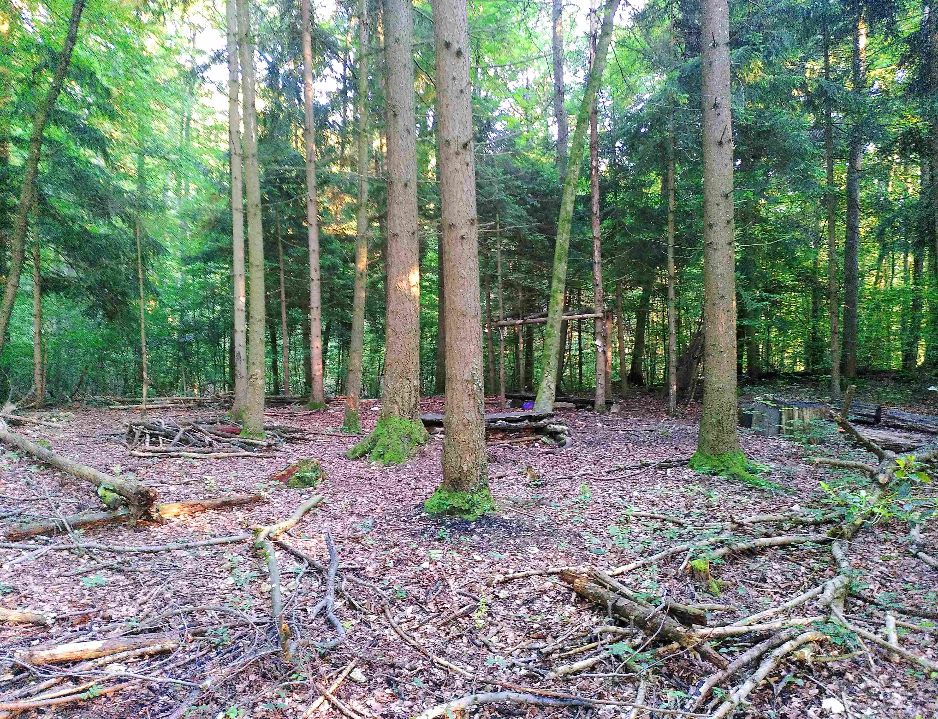Kein Wunder, dass seit kurzem die Waldspielgruppe diesen Platz jeden Dienstagmorgen nutzt. Deshalb hat es Infrastruktur der Waldspielgruppe, auf die Sorge getragen werden muss.